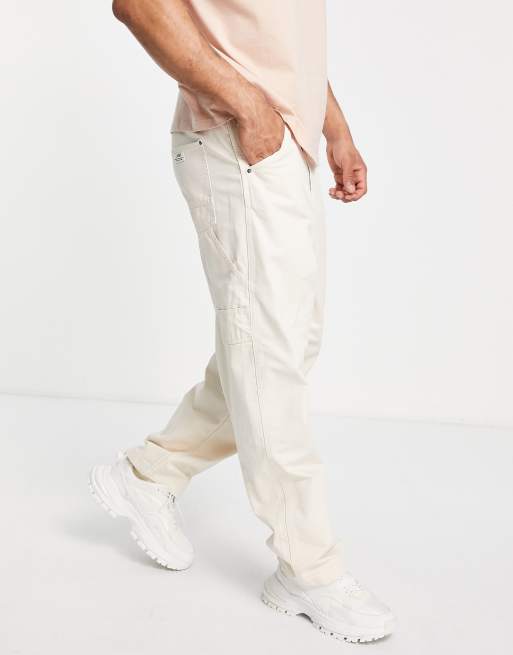 Bershka – Gräddvita snickarbyxor med ledig passform