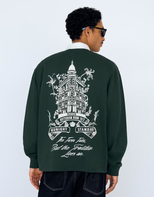 Bershka – Grön pikétröja med långa ärmar och boxig passform