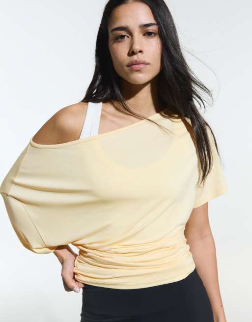Bershka – Gul, asymmetrisk t-shirt med korta ärmar och mönster