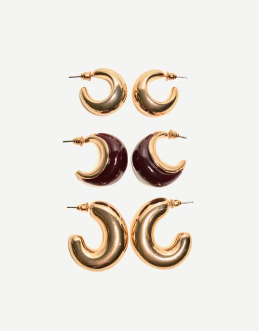 Bershka – Guldfärgade, blandade örhängen, 3-pack
