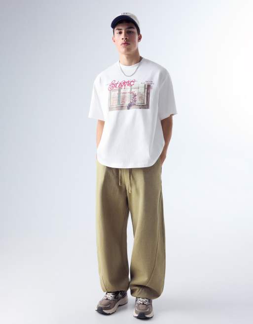 Bershka – Kakifärgade ballongbyxor med interlocksömmar