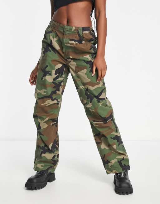 Bershka – kamouflagemönstrade baggy fallskärmsbyxor i tech-stil