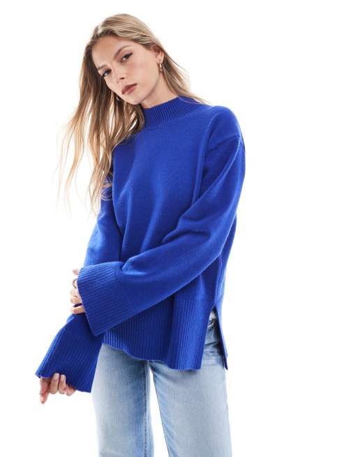 Bershka – Klarblå tröja med hög krage