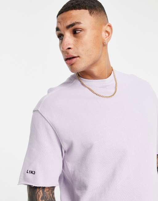 Bershka – Lila t-shirt med råskurna kanter och tvättad finish, del av set