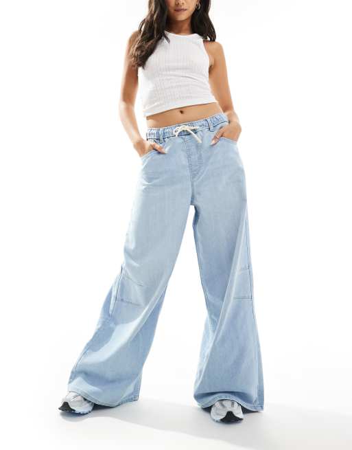 Bershka – Ljusblå jeans i denim stil med resårmidja