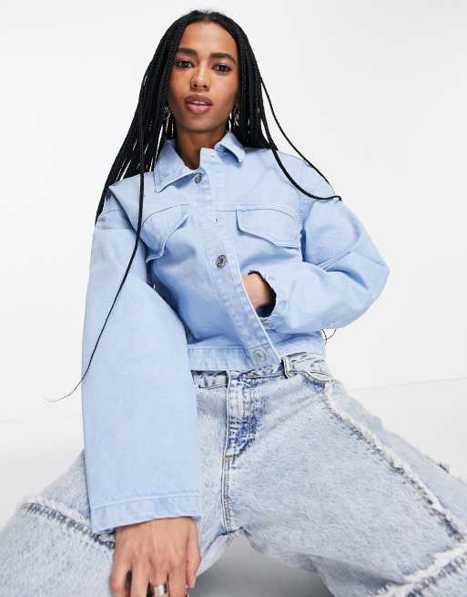 Bershka – Ljusblå kanvasjacka i bomull med stora fickor