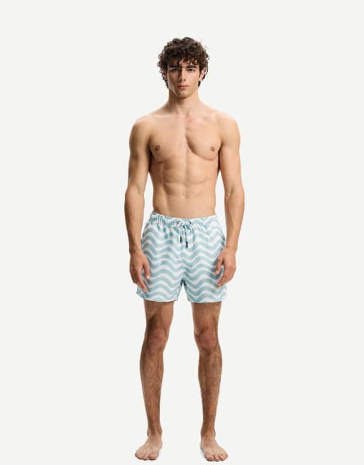 Bershka – Ljusblå, mönstrade badshorts
