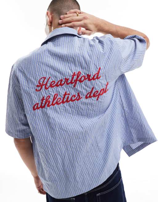 Bershka – Ljusblå, randig skjorta med broderi baktill