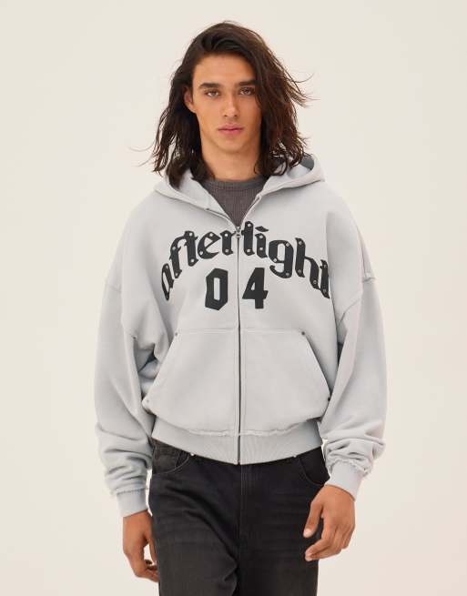 Bershka – Ljusgrå, boxig sweatshirt med dragkedja och tryck