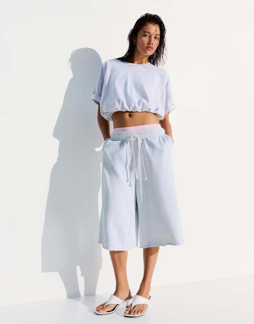 Bershka – Ljusgrå, mjuka bermudashorts
