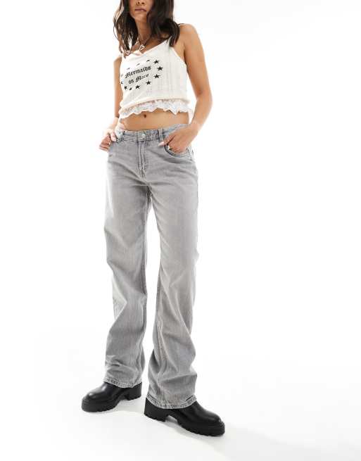 Bershka – Ljusgrå, raka jeans