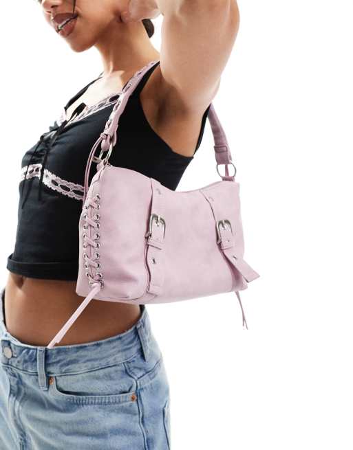 Bershka – Ljusrosa axelväska i mockaimitation
