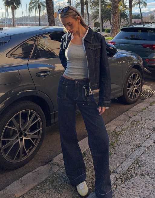 Bershka – Marinblå jeans i seamless-design med vida ben och fickor