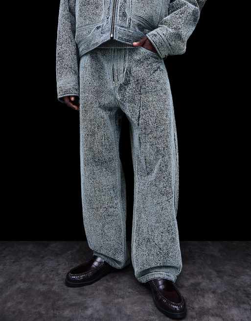Bershka – Mellanblå, baggy jeans i texturerad design