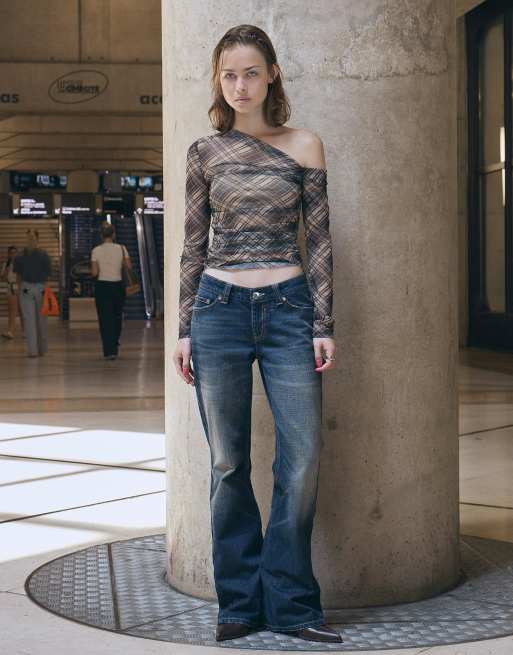 Bershka – Mellanblå, baggy jeans i utsvängd design