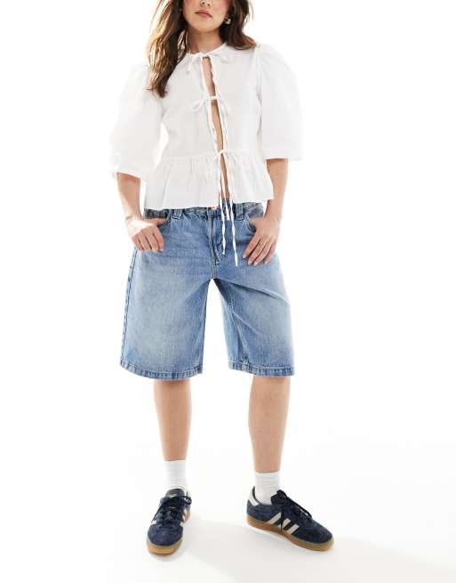 Bershka – Mellanblå baggy jeansshorts