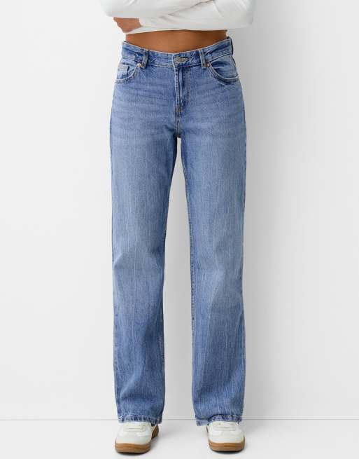 Bershka – Mellanblå straight fit jeans
