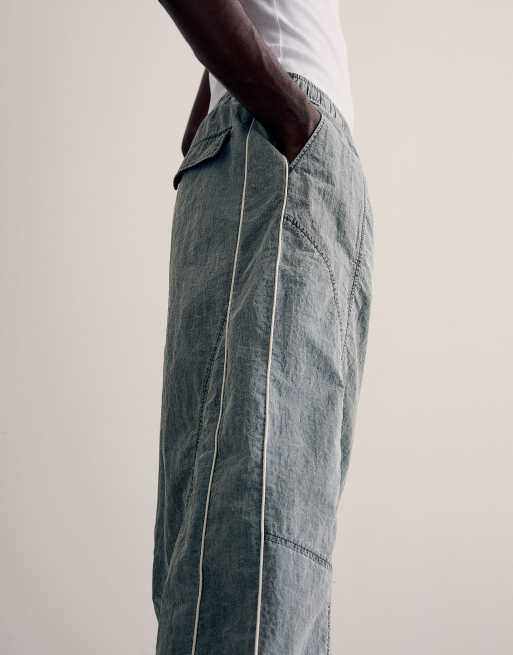 Bershka – Mörkgrå, superbaggy byxor i techstil