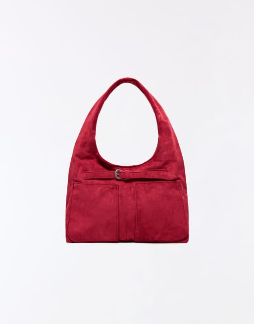 Bershka – Röd väska med platt botten i mockaimitation