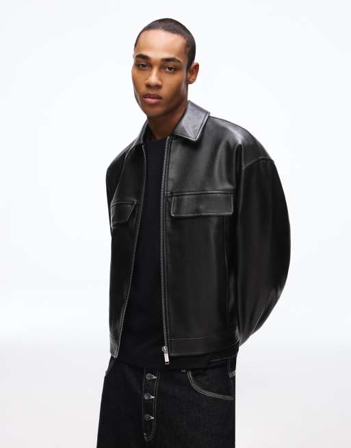 Bershka – Svart, boxig jacka i läderimitation