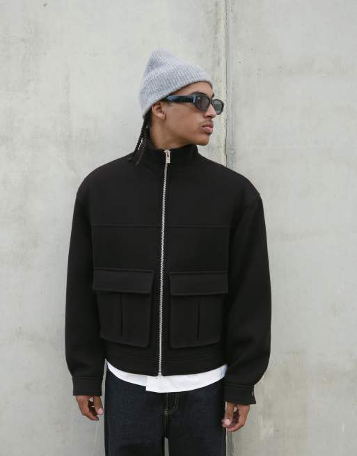 Bershka – Svart, filtstrukturerad jacka med boxig passform och dragkedja