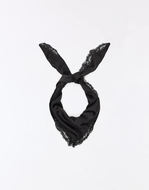 Bershka – Svart scarf i satinimitation och spets