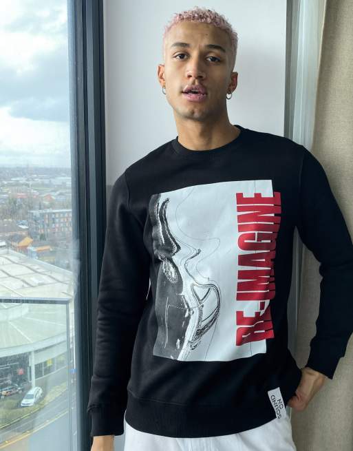 Bershka – Svart sweatshirt med rund halsringning och "re-imagine"-tryck