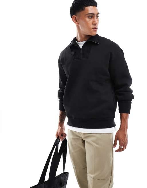 Bershka – Svart tröja med ribbad krage och kvartslång dragkedja