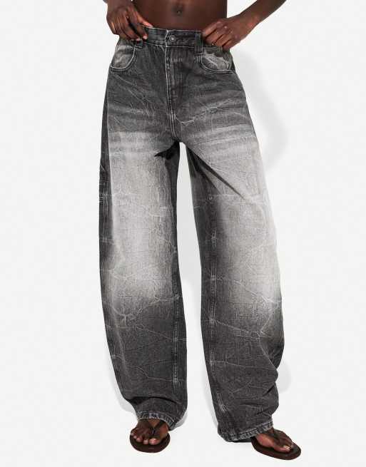 Bershka – Svarta jeans med justerbara ballongben i snickarstil