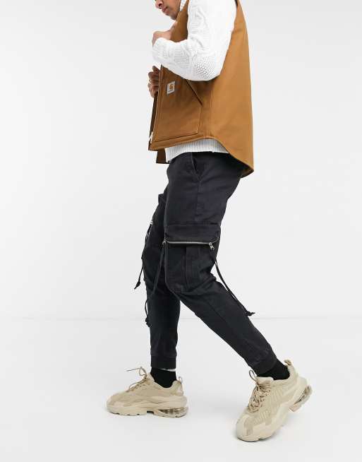 Bershka – Svarta mjukisbyxor i cargostil med fickor med dragkedja