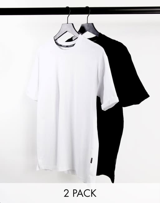Bershka – Svarta och vita t-shirtar i lång modell, 2-pack