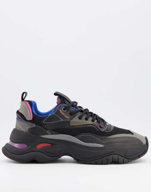 Bershka – Svarta träningsskor med flerfärgade detaljer och tjock sula