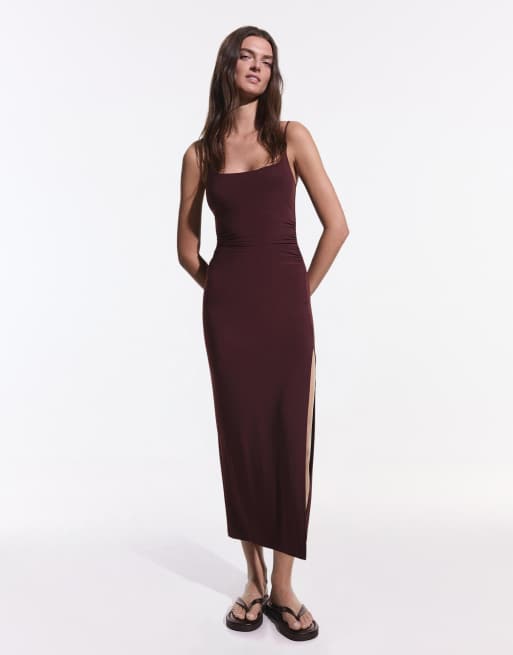 Bershka – Vinröd miniklänning med rynkning i spets