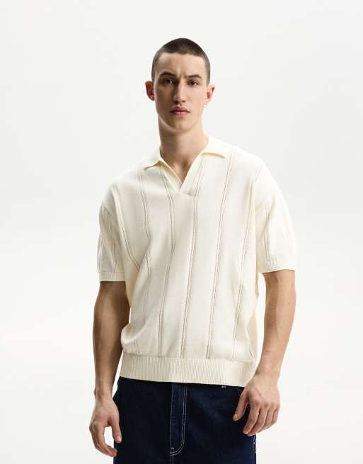 Bershka – Vit, kortärmad pikétröja med textur