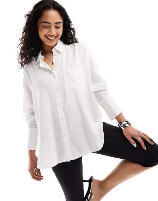 Bershka – Vit oversize skjorta i linne
