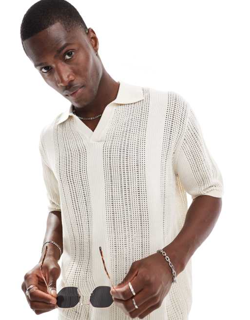 Bershka – Vit, randig, virkad pikétröja