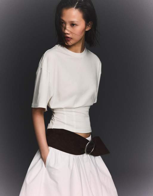 Bershka – Vit t-shirt med korta ärmar och korsettmidja