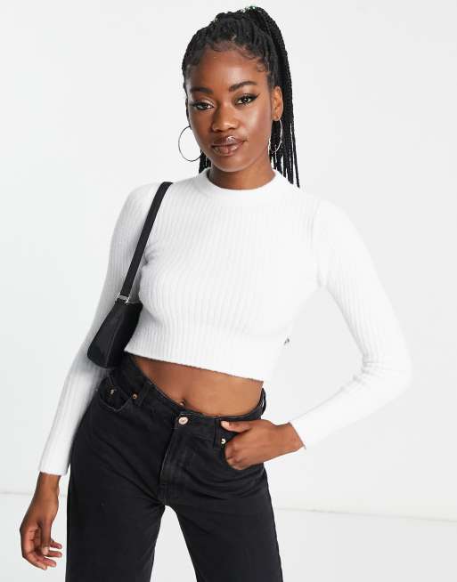 Bershka – Vit tröja i fluffigt garn