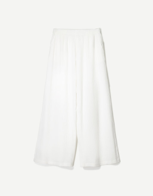 Bershka – Vita, rustika byxor med två lager och vida ben