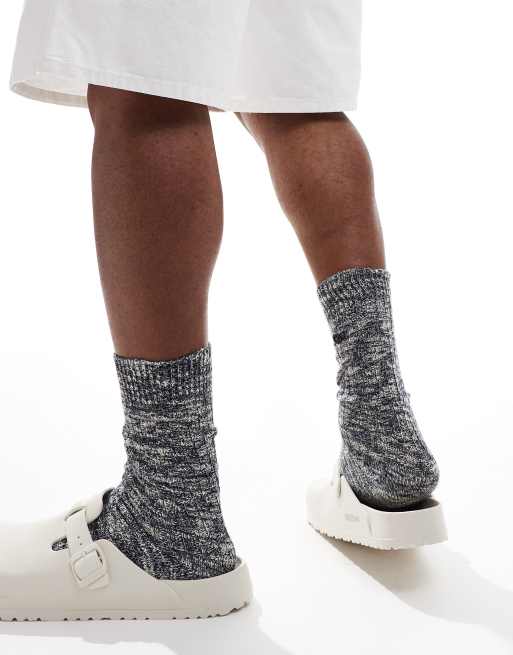 Birkenstock – Marinblå slubvävda herrstrumpor i bomull