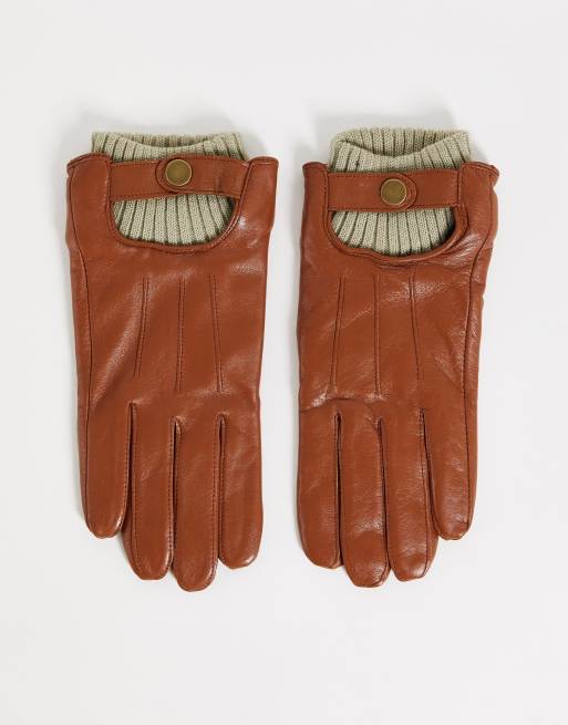Boardmans – Bruna handskar i läder med ribbade muddar