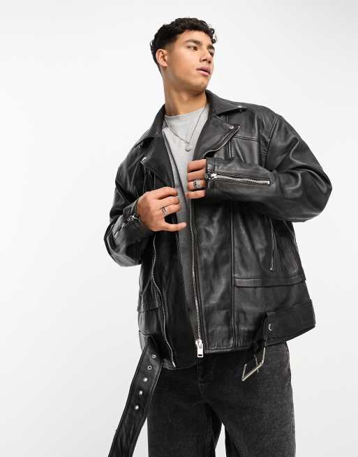 Bolongaro Trevor – Svart motorcykeljacka i läder och oversize med dragkedja