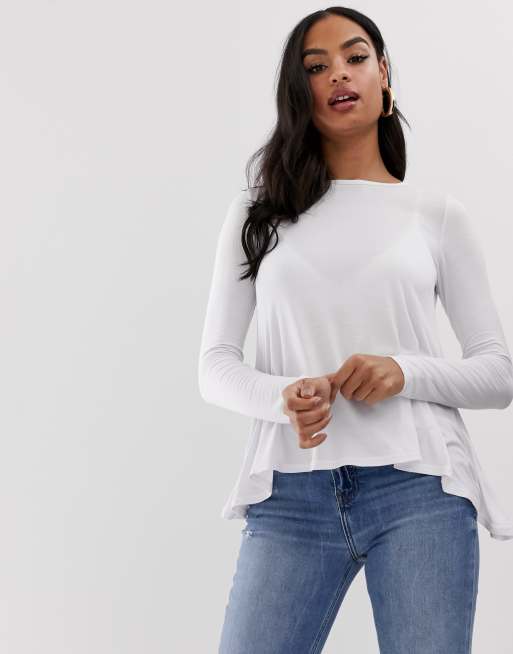 Boohoo – Vit långärmad topp
