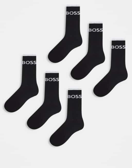 BOSS – Bodywear – 6-pack svarta, randiga träningsstrumpor med logga