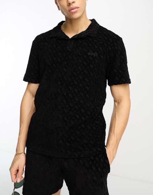 BOSS – Svart strandskjorta i frotté och pikéstil