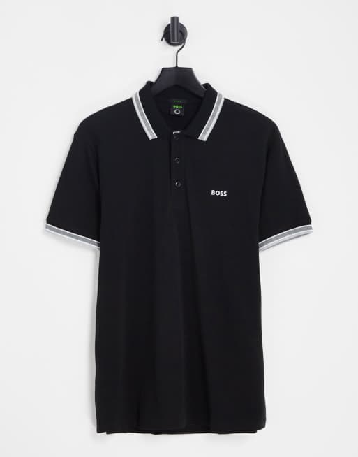 BOSS – Green Paddy – Svart pikétröja med kantrand