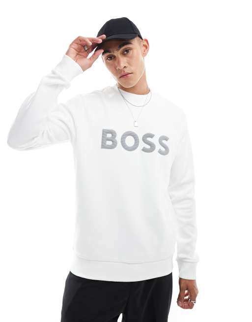 BOSS – Green Salbo – Vit sweatshirt med logga
