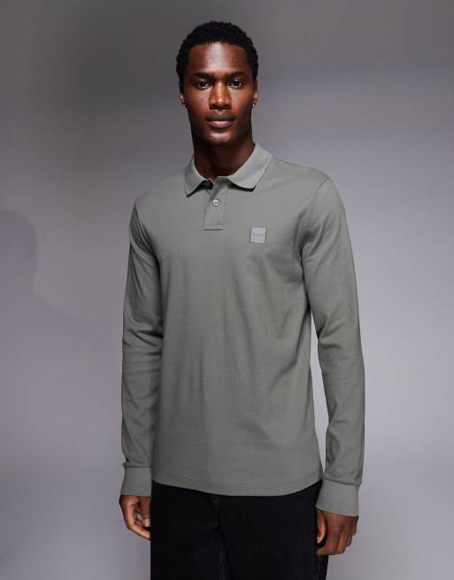 BOSS Orange – Passerby – Mellangrå, långärmad pikétröja med logga