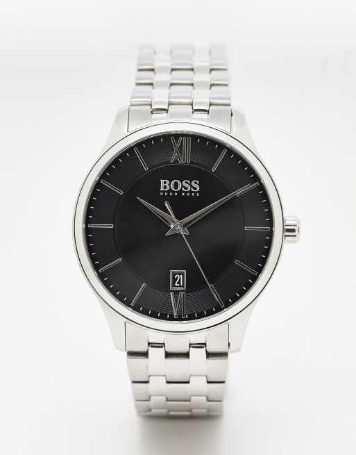 Boss – Herrklocka med svart urtavla och silverfärgad armband