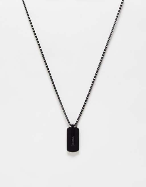 Boss – Svart halsband för män med präglat hänge 1580356